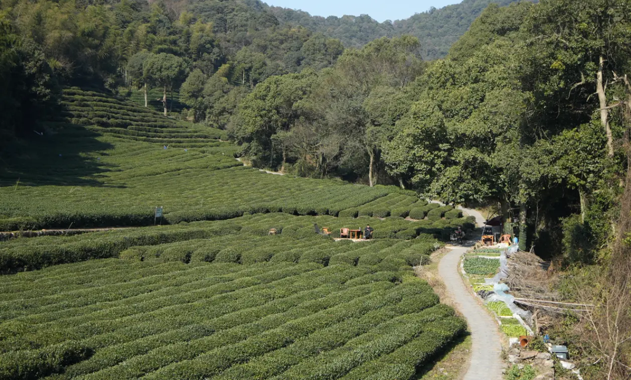 沿山脊走,两侧是茶山,天气好时,能远远看到 钱塘江