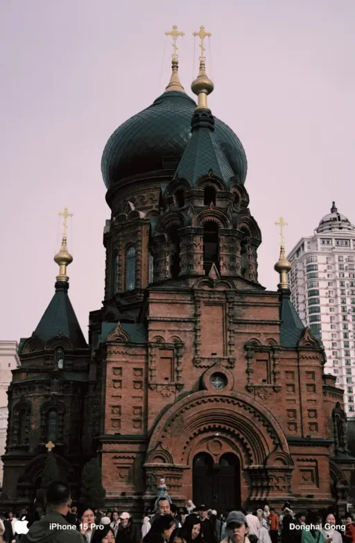 索菲亚教堂 —— 哈尔滨的地标之一。1907 年建成的拜占庭式建筑,砖红色的穹顶在蓝天下颇有气势。没来过的可以瞅瞅,广场上随处可见摄影师揽客,边上还提供租衣服的服务,主打暗黑系风格,穿上大概能拍出《沉睡魔咒》(Maleficent) 里女主那种神秘感。教堂内部也开放,花十块钱门票就能进去看看