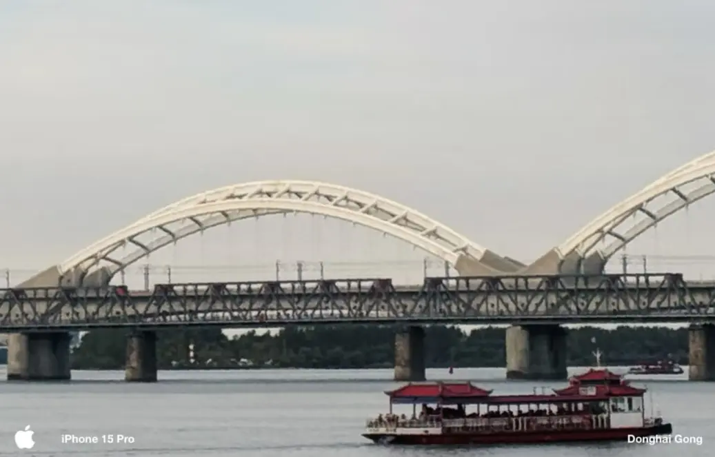 松花江边 —— 江风吹过来,带着丝丝凉意,远处是跨江大桥